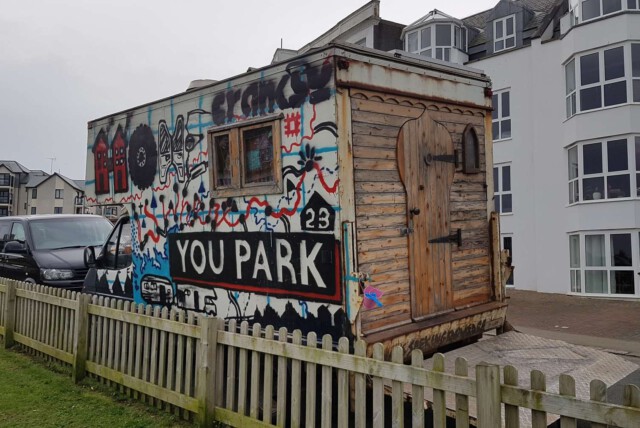 Wir hatten an diesem Tag also Zeit genug, uns das Städchen genauer anzusehen. Wir spazierten an der Küste entlang, schauten uns interessante Gebäude an und versanken stundelang in einem Cafe, wo wir genüßlich Scones mampften, die Menschen beobachteten und das WLAN leer saugten, um uns mit Musik zu versorgen und einen Schwung Bilder hochzuladen. Da wir am Tag zuvor den Aushang eines Pubs sahen, wo es heute ‚Open Mic‘ geben sollte, wollten wir den Abend unbedingt abwarten. Allerdings war das Wetter nass und stürmisch und wir sehnten uns nach Sonnenschein und schöner Natur, sodass wir uns dazu entschlossen der Küste vorerst den Rücken zu kehren und ins Landesinnere in den Brecon Beacon Nationalpark zu fahren. Wales, wir kommen!