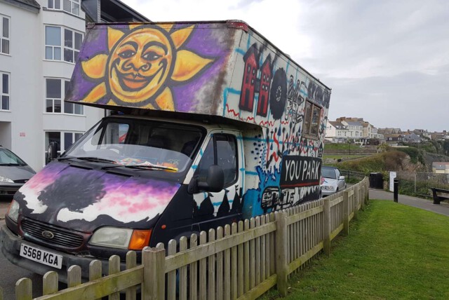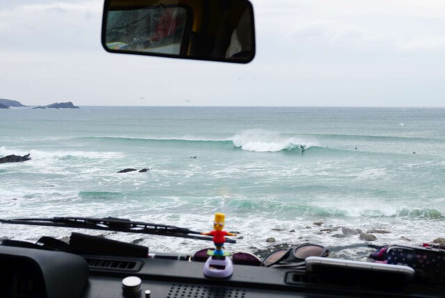 Für die Nacht suchten wir uns einen aussichtsreichen Platzdirekt am Fistral Beach. Vorne Meer, hinten Meer und dazwischen nur ein kleiner Parkplatz. „Wie cool ist das denn?!“ dachten wir da noch. Einige andere Vans standen dort bereits und berichteten uns, dass sie bisher noch keinen Ärger mit der örtlichen Aufsicht hatten. Sollte sie auftauchen, warnt man sich gegenseitig und fährt einfach schnell weg. So weit, so gut.