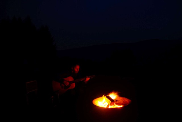 Und nach dem Abendessen machten wir uns ein gemütliches Feuer an, spielten Gitarre und tranken Bier und Martins Schnaps 🙂