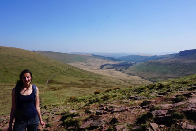 Mitten in den Beacons juckte es uns natürlich in den Wanderschuhen, weshalb wir am nächsten Tag den Dragon’s Tail Trail hinauf kletterten und anschließend teilweise etwas orientierungslos abseits der Wege durch ein Tal wieder hinab stiegen. Das war ein Tipp des Farmers. Die Flächen sind wie er sagte „Open Access“. Es ist erlaubt, daher zu laufen, wo man mag. Es ist also okay, abseits der Wege zu gehen. Mit der Ansage „turn left at the lake and keep the river at your left“ turnten wir left und kepten den Bach at our left. Es gab allerdings ziemlich viele Bäche dort. Nach dem ein oder anderen nassen Matschfuß und deutlich mehr Metern, als wir gedacht hätten, kamen wir dann doch heil und passend zum Abendessen wieder an der Farm an. Zum Glück hatte der Farmer uns eine Karte mitgegeben.