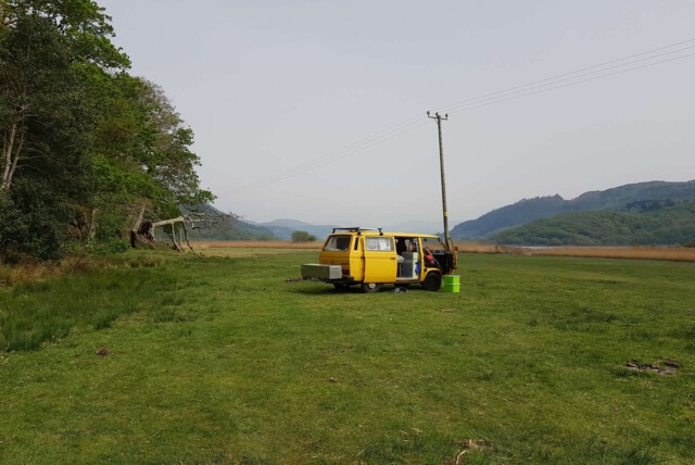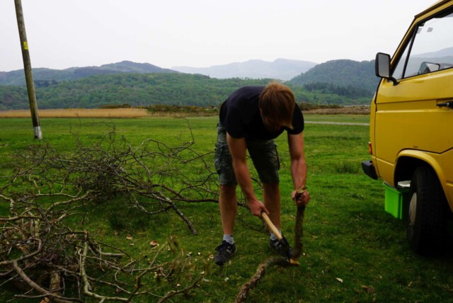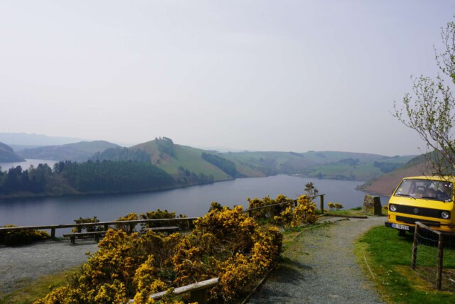 Für die Reise Richtung Snowdonia National Park hatten wir einen wirklich schönen Campingplatz direkt an einem See gefunden. Leider stellte sich bei Ankunft heraus, dass der Platz nur für Mitglieder irgendeines Scout-Clubs ist. Danke Google ;( Also droven wir weiter und fanden viel coolere Seen, an denen wir eine kleine Rast einlegten, versuchten, Hermis gut in Szene zu setzen und eine spannende Begegnung mit Roy machten, einem 71 jährigen Britischen T3 Fahrer, der schon mit 21 Aussteiger wurde und in den letzten 50 Jahren die ein oder andere interessante Geschichte erlebt hatte, an denen er uns gerne teilhaben ließ 😉