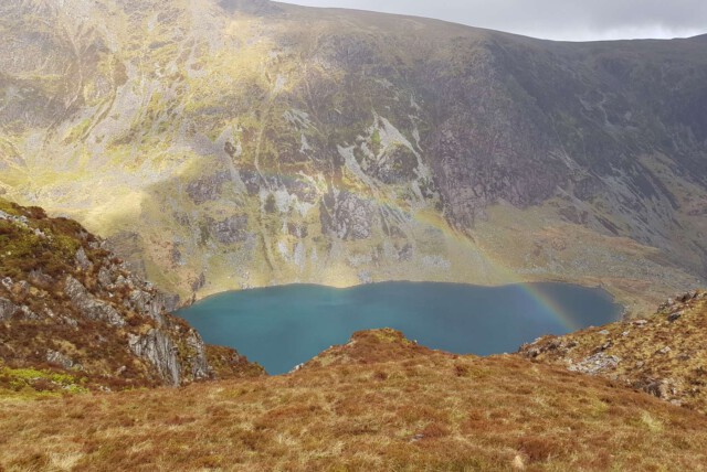 Von unserem Stellplatz konnten wir eine schon recht imposante Bergkette sehen, die Cader Idris, die mit ihrem höchsten Gipfel, dem Pen-y-Gader, schön felsig und zerklüftet aussah. Klar, dass wir da hoch wollten. Dummerweise war für den nächsten Tag Regen und Gewitter angesagt, sodass der Farmer uns sagte, dass wir auf keinen Fall da hoch sollen. Also beschlossen wir den Wetterbericht des nächsten Tages abzuwarten. Leider hatte sich Nichts an der Vorhersage geändert, sodass wir einen Tag Pause einlegten und uns das nahe Städtchen Dolgellau ansahen.