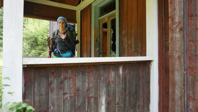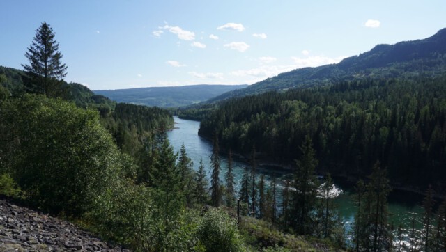 Gestärkt wanderten wir weiter, immer entlang des Gudbrandsdalen mit Blick auf den Lågen und erreichten nach vielen Höhenmetern die Schutzhütte „Stalsbergsvea“.
