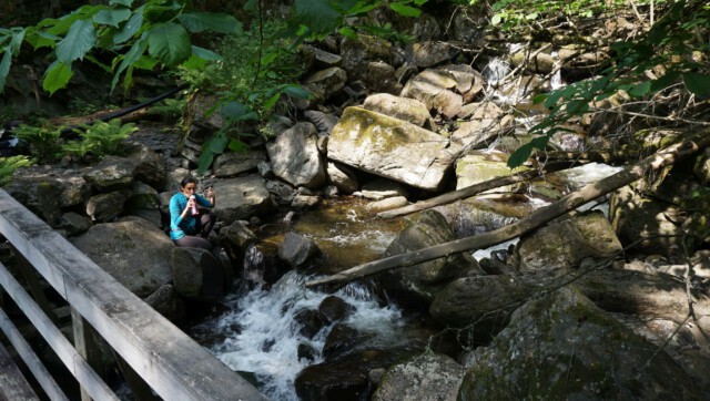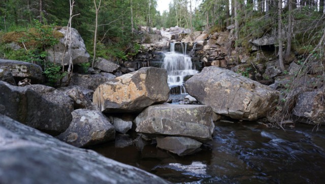 Nach langen Überlegungen und Abwägungen – wir wollten die schöne Hütte ungern verlassen – dachten wir an „safety first“ und sattelten widerwillig auf, um noch mehrere Stunden auf der Suche nach einer guten Zeltmöglichkeit durch den Wald zu laufen. Aber das konnten wir im Vorfeld natürlich noch nicht wissen. Ein Glück, dass die Tage in Norwegen derzeit so lang sind! Wir gelangten zum „Wasserfall der Verliebten“, doch nach einem romantischen Feeling war uns beiden nicht zumute.