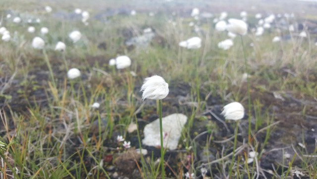 Unterwegs erblickten wir voller Ehrfurcht zahlreiche Moschusochsen, die entweder ein Sonnenbad nahmen oder sich am Gebirgsbach erfrischten. Keine 300 m waren wir von den Tieren entfernt, die uns zwar registrierten, aber offenbar kein ernsthaftes Interesse an einer Bekanntschaft hatten 🙂
