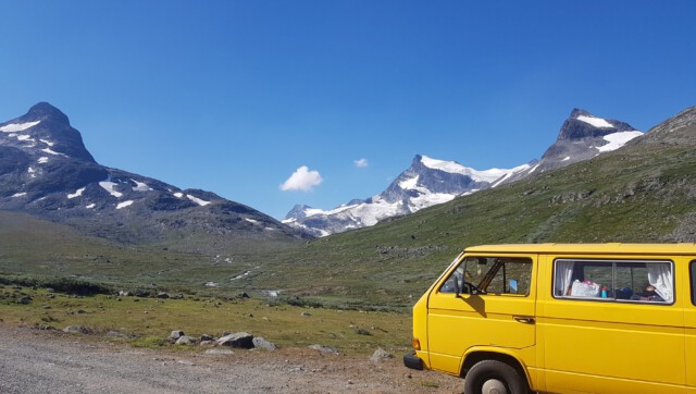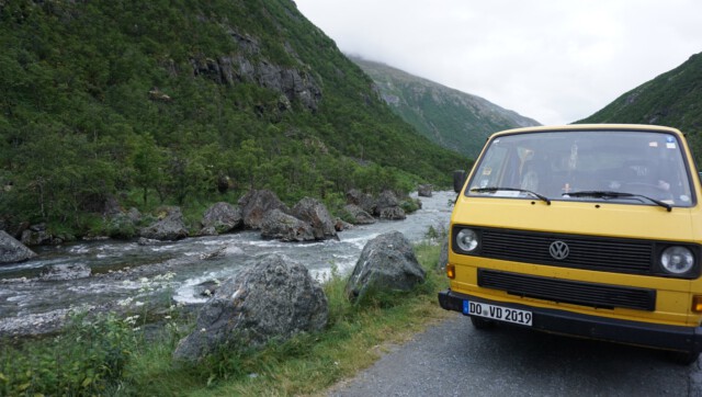 Wie ihr euch sicherlich vorstellen könnt, war unsere Wanderlust nach dem enttäuschenden Olavsweg ziemlich im Ar$(11. Laut unserem Wanderführer sollte das Dovrefjell der schönste Abschnitt des Olavsweges sein. Also machten wir uns auf den Weg ins nicht weit entfernte Örtchen „Kongsvoll“, wo wir nahe der Pilgerunterkunft den Bulli stehen ließen und ins Fjell loszogen.