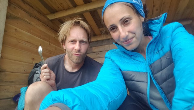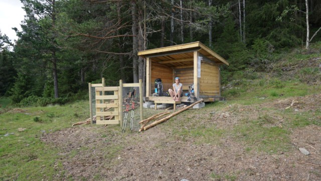 Wieder auf dem Weg erreichten wir nach zehn Kilometern eine Hütte des norwegischen Tourismusverbandes. Diese ist wunderschön an einem Felsvorsprung gelegen und wirkte sehr einladend. Da wir aber noch genügend Energie hatten und das Wetter auf unserer Seite war, beschlossen wir weiter zu ziehen. Nur einige Kilometer vor der Giraffe trafen wir das belgische Paar. Kurz darauf erreichten wir ‚unseren‘ Zeltplatz und trennten uns hier von unseren beiden Mitpilgern. Zu diesem Zeitpunkt wussten wir noch nicht, dass dies unsere letzte Begegnung sein sollte.