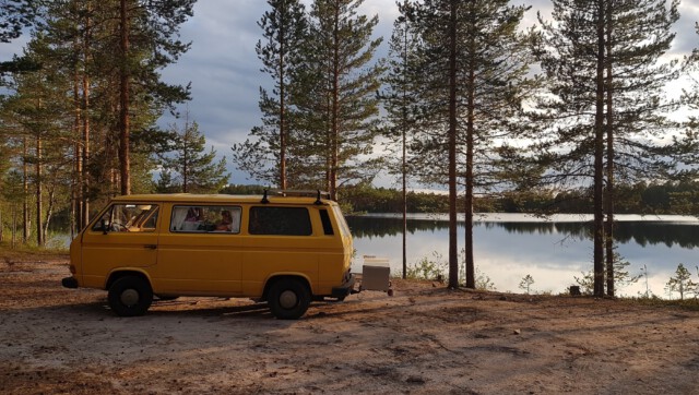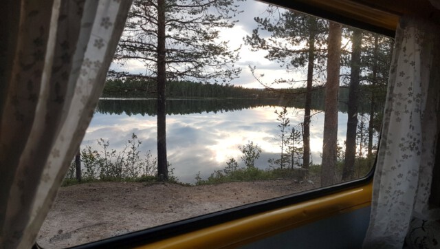 Nach einem kleinen Schlenker (auf Empfehlung eines Verkäufers eines Baumarktes in Arjeplog) fanden wir das lang ersehnte Teil für den Gasanschluss und bauten den Kocher auf einem wunderschönen Stellplatz an einem See ein. Und er funktionierte einwandfrei! Jihaaaa!