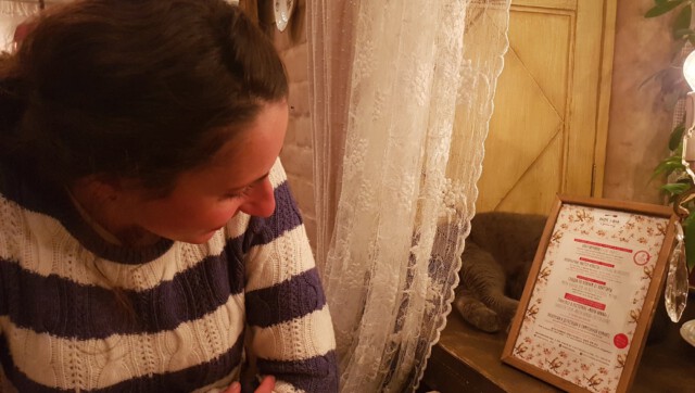 Als wir mal wieder zu später Stunde auf der vergeblichen Suche nach einem Stellplatz waren, hielten wir an einem Gästehaus, um die nette Besitzerin zu fragen, ob wir auf ihrem Parkplatz übernachten dürften. Diese beäugte uns mißtrauisch und war sichtlich darüber verwundert, dass wir komischen Touristen in unserem Auto schlafen wollten, gab uns aber das OK dazu. Als sie nach einem kurzen Small Talk etwas mehr Vertrauen geschöpft hatte, lud sie uns zu sich ins Haus auf einen Tee und Kekse ein. Deedee dachte sich immer wieder: „Wie gut, dass Vicky russisch spricht.“.
