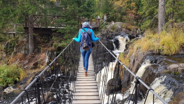 Am nächsten Tag machten wir eine kleine Wanderung durch den Ruskeala Bergpark und fanden direkt im Dorf einen sehr ursprünglichen und einfachen Campingplatz in wunderschöner Lage, wo wir den Tag am Lagerfeuer ausklingen lassen konnten.
